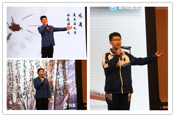 他们选择的朗诵篇目都是千古传颂的名篇,或绮丽婉约,或壮阔大气。同学们沉浸在诗词的意境里,声情并茂,激情飞扬:在凝练深厚的语言中见证古人的风骨;于磅礴激烈的气势中感受爱国之情;在温暖亲切的语调中歌咏永恒的亲情;在酣畅雄壮的叙述中表达奋勇拼搏、振兴中华的壮志豪情。充满感情和爆发力的朗诵感染了在场的每一位观众,激起了大家的强烈共鸣,现场掌声不断。