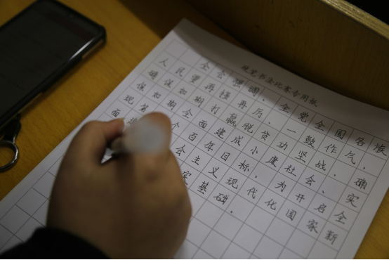 活动现场,参赛同学聚精会神、满怀激情,用心书写每一个汉字,尽其所能地展现自身书法才能,作品无不透着或规范、或严整、或灵动的气质。认真、严谨的态度就像他们所写的字一样,字如其人背后,付出的是辛勤的汗水和勤奋的练习。
